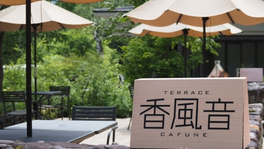 Enjoy seasonal cakes like raspberry, Shine Mascut, and chestnut. Our Coffee & Cake Set is made with freshly ground beans and pure water from the Shimizu River. You can relax in the lounge or on the Cafune terrace, surrounded by greenery and a cool mountain breeze.