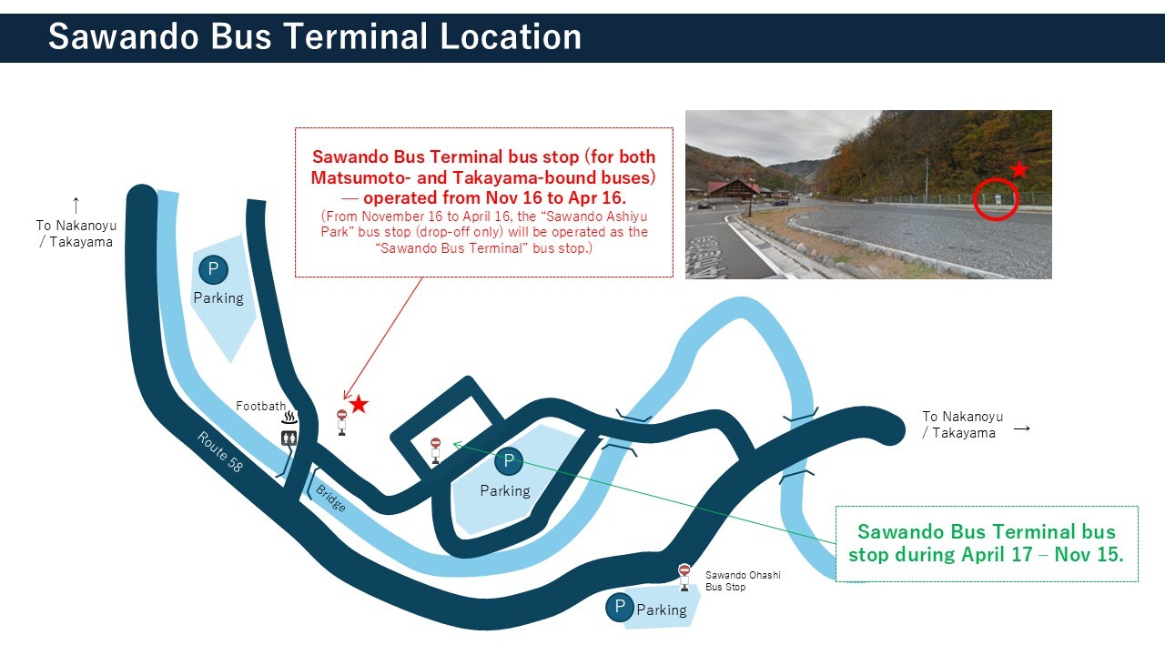 - 在 4 月 17 日至 11 月 15 日期間,希望從松本和中之湯之間乘車的乘客,請改乘松本 - 上高地列車和巴士線。